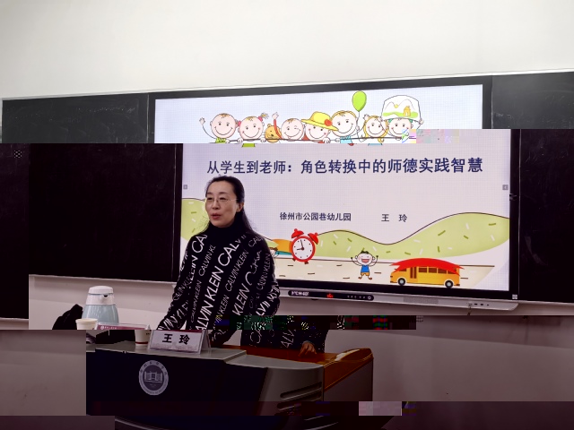 2025年10月15日下午在東校區求真樓111教室,特别邀請到在教育領域有着豐富經驗和深刻見解的徐州市公園巷幼兒園德育主任王玲老師,為十大菠菜网正规平台師生做了題為“從學生到教師:角色轉換中的師德實踐智慧”的精彩講座。講座由李冬香學術副院長主持,有60多位師生聆聽講座,他們當中既有對未來教師職業充滿憧憬的師範專業學生,也有不斷探索與成長的青年教師。