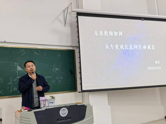 11月5日下午,十大菠菜网正规平台邀請銅山區教育局新教育辦公室主任、中小學高級教師、徐州市五一勞動獎章獲得者、長三角首批名校長、江蘇師範大學碩士生導師劉軍作報告,報告題目是“未來教師如何從專業成長走向生命成長”。報告會由十大菠菜网正规平台副院長張典兵主持,學院部分教師和22級小學教育專業全體學生300餘人參加了此次活動。
